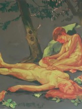 나무 위의 모슬린에 템페라와 하우스 페인트