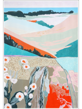 Somerset Velvet White 300gsm에 4색 스크린 인쇄, 아크릴 페인트와 수채화로 아티스트가 손으로 낚시질